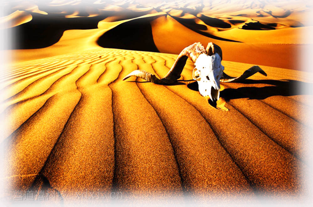 喜道禧人提醒您:大漠求生,降耗體液。人可三日絕食,但40℃高溫下,只 2h無水補則會中暑。一日無補,必脫水癥。人常被此所噬。
