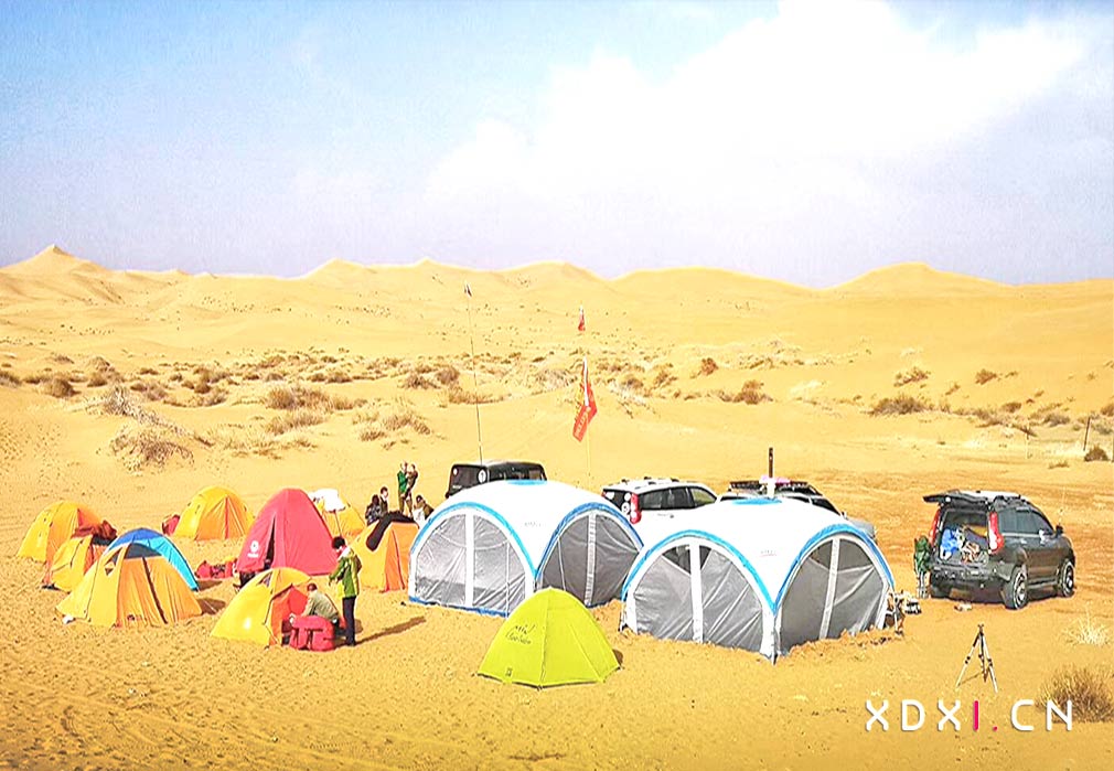 去年五一,騰格里突降大雪。當時喜道禧公司員工組隊一行有備而至,公司 保障車攜帳八頂、睡袋八條、油爐兩臺、美食多樣,隨行越野車三輛。