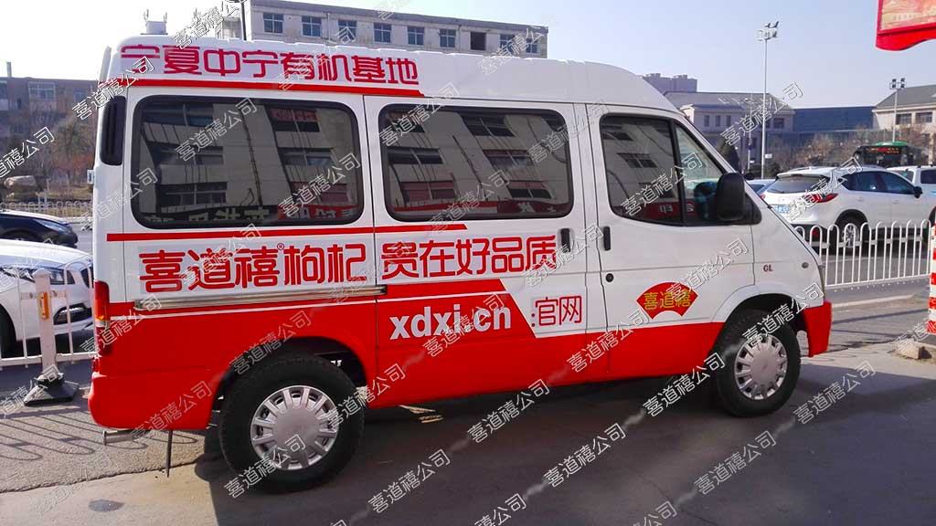 目前,從車的全局來看,較滿意,車的整體布局為步步高升之勢,字是足夠的大,醒目,即是宣傳車又是服務(wù)車;有限空間承載的信息多,最重要的是金牌產(chǎn)品匹配商務(wù)寬體車的成本是巨大的,這也是對喜道禧加盟商的最大支持,同時(shí)又是對客戶的高度負(fù)責(zé)!