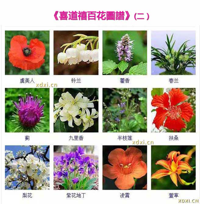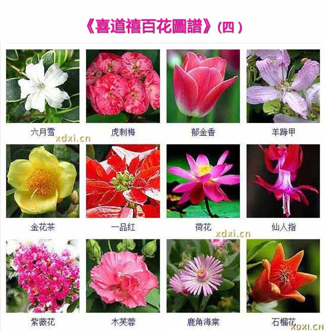 花友 (對(duì)各種花的雅稱(chēng)) 、十二客 (對(duì)十二種名花的謔稱(chēng)) 、玉英 (花的美稱(chēng)) 、玉玲瓏 (花的別名) 、 瑤芳 (白色花朵的美稱(chēng))、 瓊苞 (花苞的美稱(chēng)) 、玉葉 (花木葉子的美稱(chēng)) 、木芍藥 (牡丹的別名)、 百兩金 (牡丹的別名)、 伊洛傳芳 (牡丹的別稱(chēng)) 、花后 (牡丹的別名) 、貴客 (牡丹的別名)、 洛陽(yáng)花 (牡丹的別稱(chēng)) 、鹿韭 (牡丹的別名)、 雄紅 (牡丹的別名) 、賞客 (牡丹的別名) 、鼠姑 (牡丹的別名)、 醒酒花 (牡丹花的別名)、 京花 (千葉牡丹的別名) 、九英梅 (蠟梅的別名) 、久客 (臘梅的別名) 、小黃香 (蠟梅的別名)、 奇友 (蠟梅的別稱(chēng))、 黃梅花 (蠟梅的別名) 、寒客 (臘梅的異名) 、狂客 (楊花的別稱(chēng))、 一捻紅 (山茶花的別名) 、月丹 (山茶的別名)、 玉茗 (白山茶花的別稱(chēng))、 豐瑞花 (瑞圣花的別名) 、閨客 (瑞香花的別名) 、紫風(fēng)流 (麝囊花的別名)、 蓬萊紫 (瑞香花的別名) 、錦熏籠 (瑞香花的別名)、麝囊 (瑞香花的別名) 、僭客 (春花的別名) 、 百結(jié)花 (丁香的別名) 、素客 (丁香花的別名)、 情客 (丁香的別名) 、女郎花 (辛夷的別名)、 書(shū)客 (木筆花的名) 、新夷 (木蘭的別名)、 山石榴 (亦省稱(chēng)“山榴”,杜鵑花的別稱(chēng))、 山客 (躑躅的雅稱(chēng)) 、山躑躅 (杜鵑花的別名)、 紅躑躅 (紅杜鵑花的別稱(chēng))、 映山紅 (杜鵑花的別名)、 謝豹花 ( 杜鵑花的別名)、 躑 (杜鵑花的別名)、 躑躅 (杜鵑花的別名) 、拘那夷 (亦稱(chēng)“拘兒”,夾竹桃的別名)、 俱那衛(wèi) (夾竹桃的別名)也叫俱那異、枸那花 、川紅 (海棠的別名) 、名友 (海棠的別名) 、蜀客 (海棠的別名)、 蜀錦 (海棠的別稱(chēng))、 醉美人 (垂絲海棠的別稱(chēng)) 、雪 (繡球花的別名) 、內(nèi)消 (紫荊的別名)、 蚍蜉 (紫荊的別名) 、七里香 (山礬的別名)、 幽客 (山礬的別名)、 米囊 (花的別名)、 照殿紅 (佛桑花的別名)、 馬塍 (合歡的別名)、 馬纓花 (合歡樹(shù)的別稱(chēng))、 青囊 (合歡的別稱(chēng)) 夜合 (合歡的別名)、 鸚哥花 (刺桐花的別名) 、木丹 (梔子的別名)、 林蘭 (梔子的別名) 、越桃 (梔子的別名) 、禪客 (梔子的別稱(chēng))、 鮮支 (梔子的別名)、石醋醋 (石榴的異名)、 村客 (對(duì)石榴的戲稱(chēng)) 、百日紅 (紫薇的別名)、 怕癢樹(shù) (又名百日紅,紫薇花的別名) 、官樣花 (紫薇花的異名) 、猴郎達(dá)樹(shù) (亦稱(chēng)“猴刺脫”,紫薇的別名)、 滿(mǎn)堂紅 (紫薇的別名) 、王蒸 (木槿的別名) 、日及 (木槿的別名) 、時(shí)客 (木槿的別稱(chēng))、 瘧子花 (槿花的別名) 、面花 (木槿花的別名) 、愛(ài)老 (木槿的異名) 、朝開(kāi)暮落花 (木槿的別名)、 朝生 (木槿的別名) 、朝華 (亦稱(chēng)“朝客”,木槿的別名)、 朝 (木槿的別名)、 裹梅花 (木槿的別稱(chēng)) 、藩籬草 (木槿的別稱(chēng)) 、七里香 (桂花的別名)、 九里香 (木犀的別稱(chēng))、 廣寒仙 (桂花的美稱(chēng)) 、木樨 (同“木犀”,桂花的別稱(chēng)) 、仙客 (桂的異名) 、嚴(yán)客 (亦作“巖客”,木樨的別稱(chēng))、 巖桂 (木犀的別名)、 金粟 (桂花的別名)、 木蓮 (木芙蓉的別名) 、木蕖 (木芙蓉的別名) 拒霜 (木芙蓉的別稱(chēng))、 斷腸草 (木芙蓉的別名)、 綺帳 (芙蓉花的別名)、 醉客 (木蓮的謔稱(chēng))、 女郎花 (木蘭的別名)、 佞客 (含笑花的異名) 、 攀枝花 (木棉花的別稱(chēng)) 、一枝春 (梅花的別名)、木母 (梅的別名) 、花魁 (梅的別名)、 狀元花 (梅花的別稱(chēng))、 國(guó)香 (梅的異名) 、梅兄 (對(duì)梅花的雅稱(chēng)) 、梅妻 (對(duì)梅花的戲稱(chēng))、 清客 (梅的別名) 、寄春君 (梅的別稱(chēng)) 、暗香疏影 (梅花的代稱(chēng)) 、九疑仙人 (綠萼梅的別名) 、玉骨 (梅花枝干的美稱(chēng)) 、葦綃 (李花的別稱(chēng)) 、俗客 (李花的別名) 、及第花 (杏花的別名)、 瀛州玉雨 (梨花的別名)、 鬼客 (棠梨花的別稱(chēng))、 月臨花 (林檎花的別名)、 雋客 (橘花的雅稱(chēng)) 、勢(shì)客 (凌霄花的別名) 、鬼目 (凌霄花的別名) 、 陵苕 (凌霄花的別名) 、紫葳 (凌霄花的別名)、 小南強(qiáng) (茉莉花的別稱(chēng)) 、狎客 (茉莉的別名)) 、柰花 (亦作“柰子花”,茉莉花的別名) 、萼綠君 (茉莉花的別名)、 華 (亦作“花”,茉莉花的別名)、 俗客 (棣棠花的別名) 、玉雞苗 (薔薇的別名)、 買(mǎi)笑 (薔薇花的別名) 、錦被堆 (薔薇花的俗名) 、刺客 (玫瑰花的別稱(chēng)) 、徘徊花 (亦省稱(chēng)“徘徊”,玫瑰花的別稱(chēng))、 斗雪紅 (月季花的別名) 、紫華 (月季花的別名) 、癡客 (月季花的別名) 、才客 (酴花的謔稱(chēng)) 、木香 (酴花的別名) 、獨(dú)步春 (酴花的別名)、 雅客 (酴的別稱(chēng)) 、韻友 (酴花的別名)、 烏朕花 (玉蕊花的別名) 、散水花 (玉蕊花的別名) 、仙客 (瓊花的異名) 、文官花 (錦帶花的別名) 、海仙 (錦帶花的別名) 、長(zhǎng)十八 (牽牛花的別名) 、狗耳草 (牽牛花的別名) 、喇叭花 (牽牛花的別名) 、勤娘子 (牽牛花的俗稱(chēng)) 、田客 (鼓子花的別名) 、豚腸草 (旋花的別名) 、筋根 (旋花的別名) 、赦肺侯 (款冬花的別稱(chēng)) 、橐吾 (款冬花的別名) 、可離 (芍藥的別名)、 白犬 (芍藥的別名)、 當(dāng)離 (又名將離,芍藥的別名)、 近客 (芍藥的別名) 